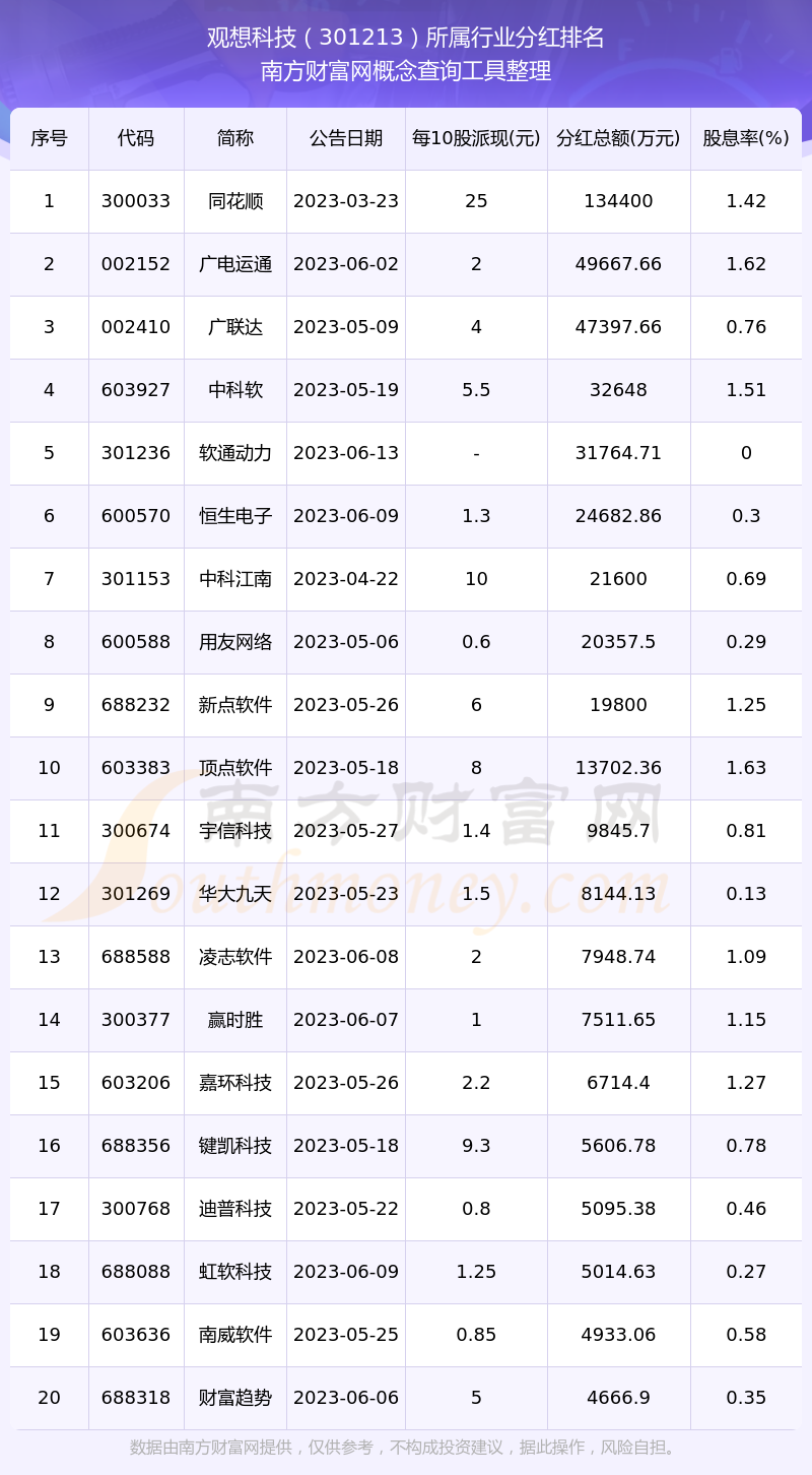 按照开云手机web版登录入口趋势选股系统统计,观想科技所属行业为软件开发行业,软件开发行业分红排名情况如下表: