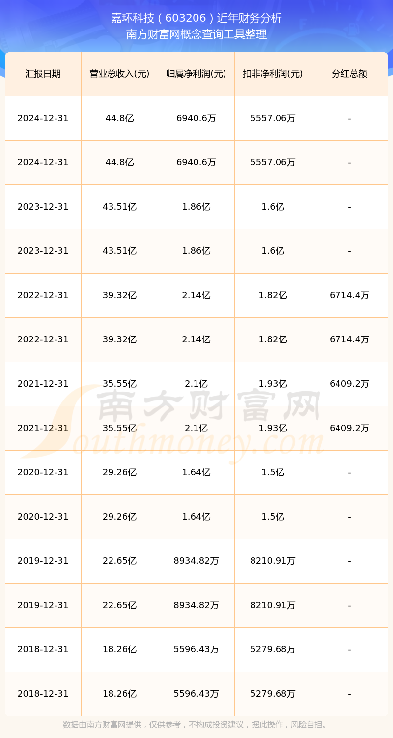 嘉环科技最新一次公布的分红方案:10派2.2元。