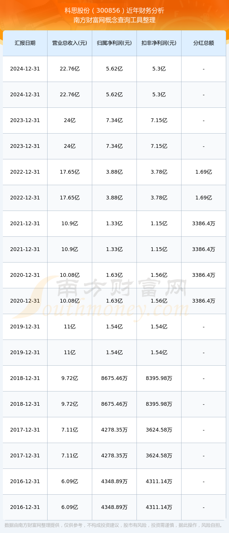 2024年报显示,科思股份实现营收22.76亿,同比增长-5.16%;净利润5.62亿,同比增长-23.33%;毛利率44.4%。