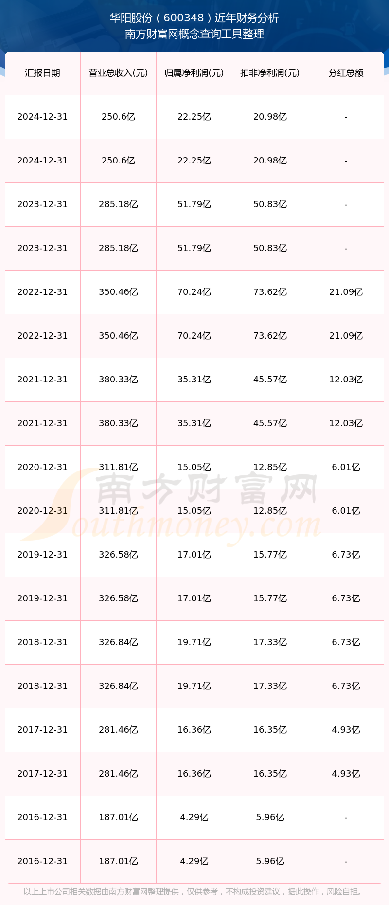 近年华阳股份分红派息情况如下表所示: