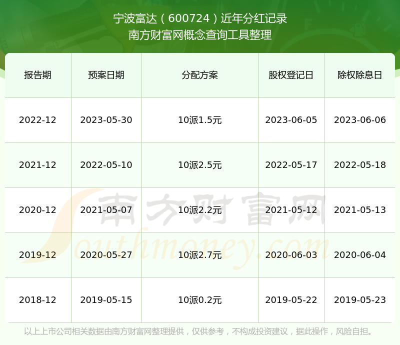 宁波富达最新一次公布的分红方案:10派1.5元。