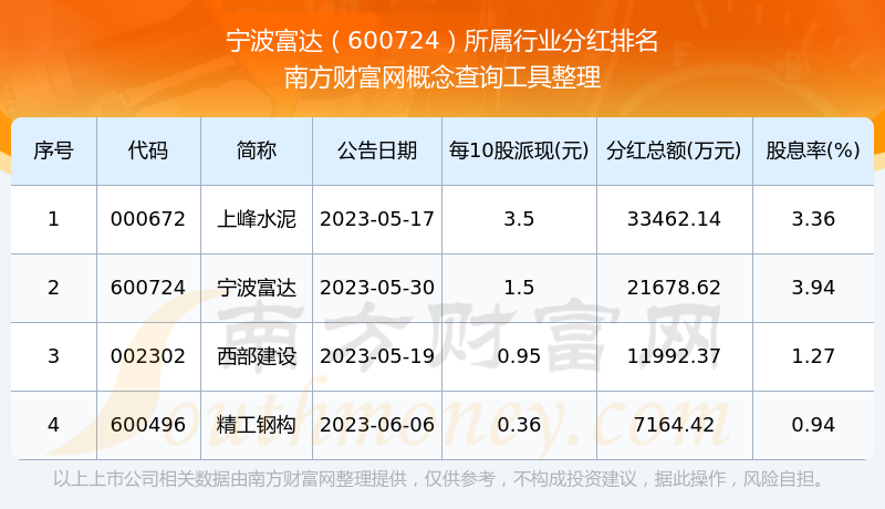 按照开云手机web版登录入口趋势选股系统统计,宁波富达所属行业为水泥建材行业,水泥建材行业分红排名情况如下表: