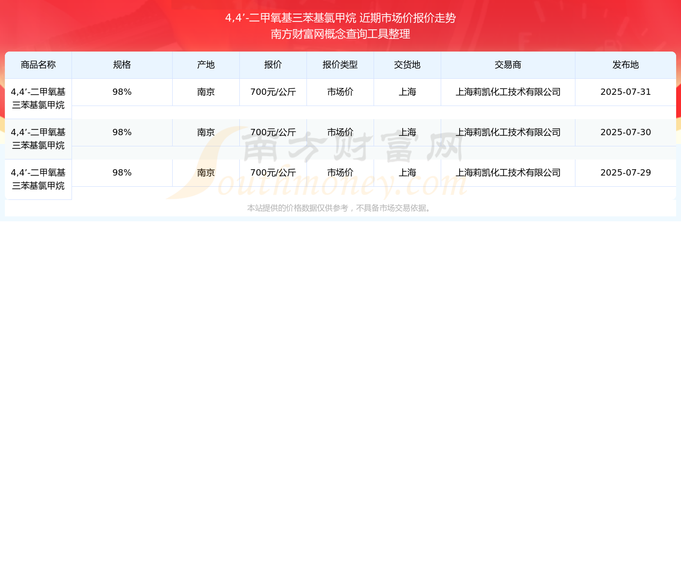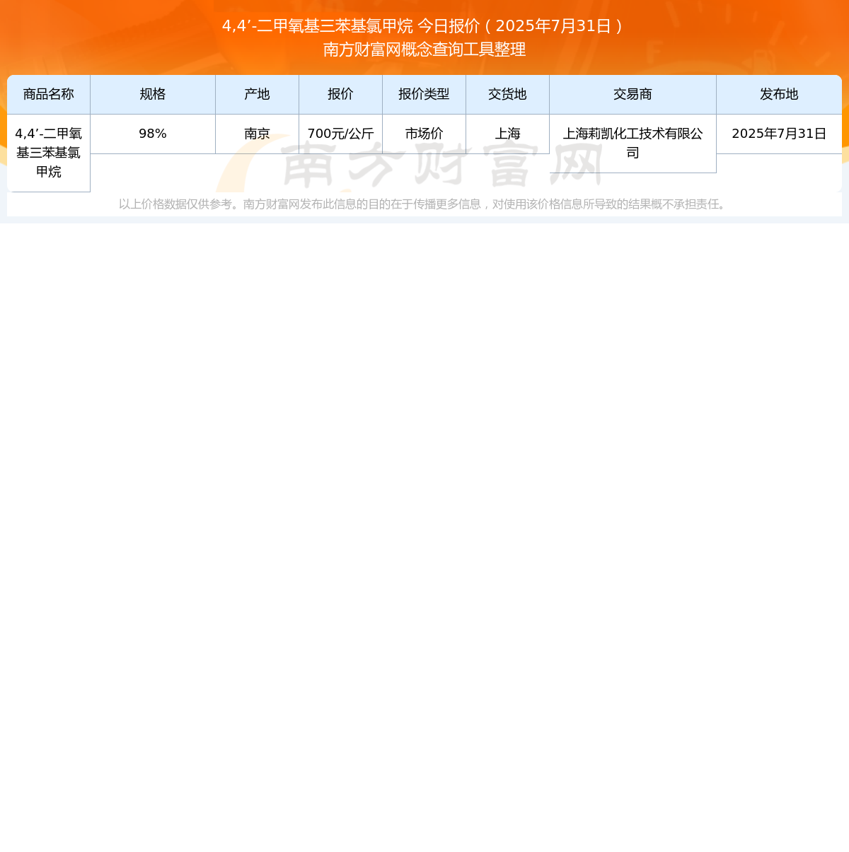 2025年7月31日4,4’-二甲氧基三苯基氯甲烷 市场价报价动态及近期市场价报价走势