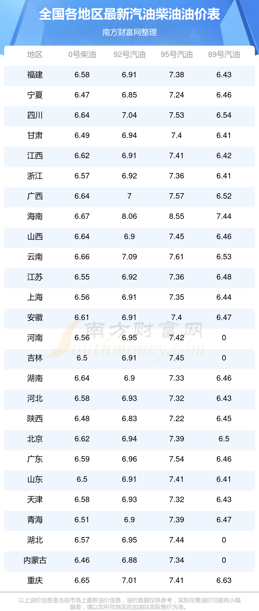 油价数据仅供参考,请以您所在地区的各加油站报价为准。