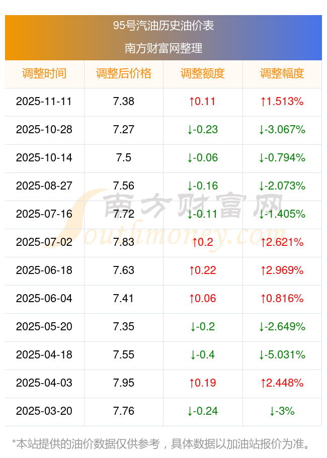 福建2025年汽油价格调整时间表