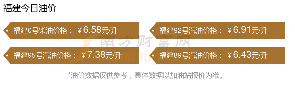 11月14日福建汽油柴油价格最新价一览表