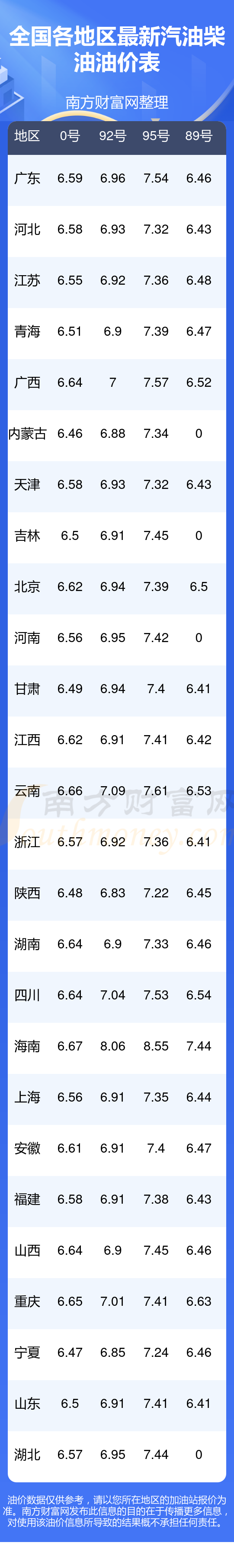全国各地区最新油价表