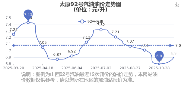 太原2025年汽油价格调整走势图