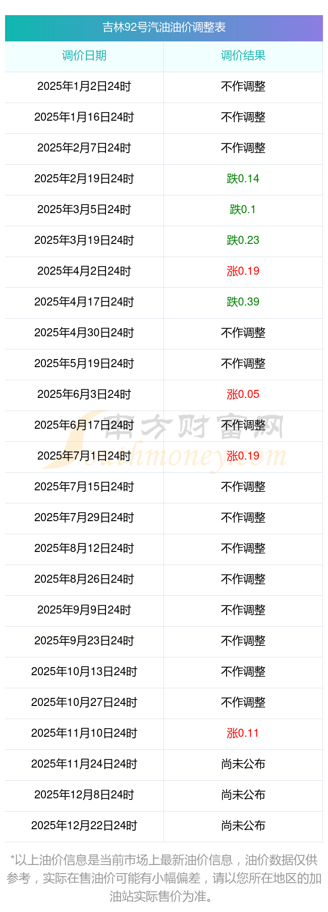 2025年吉林最新汽油价格调整一览表