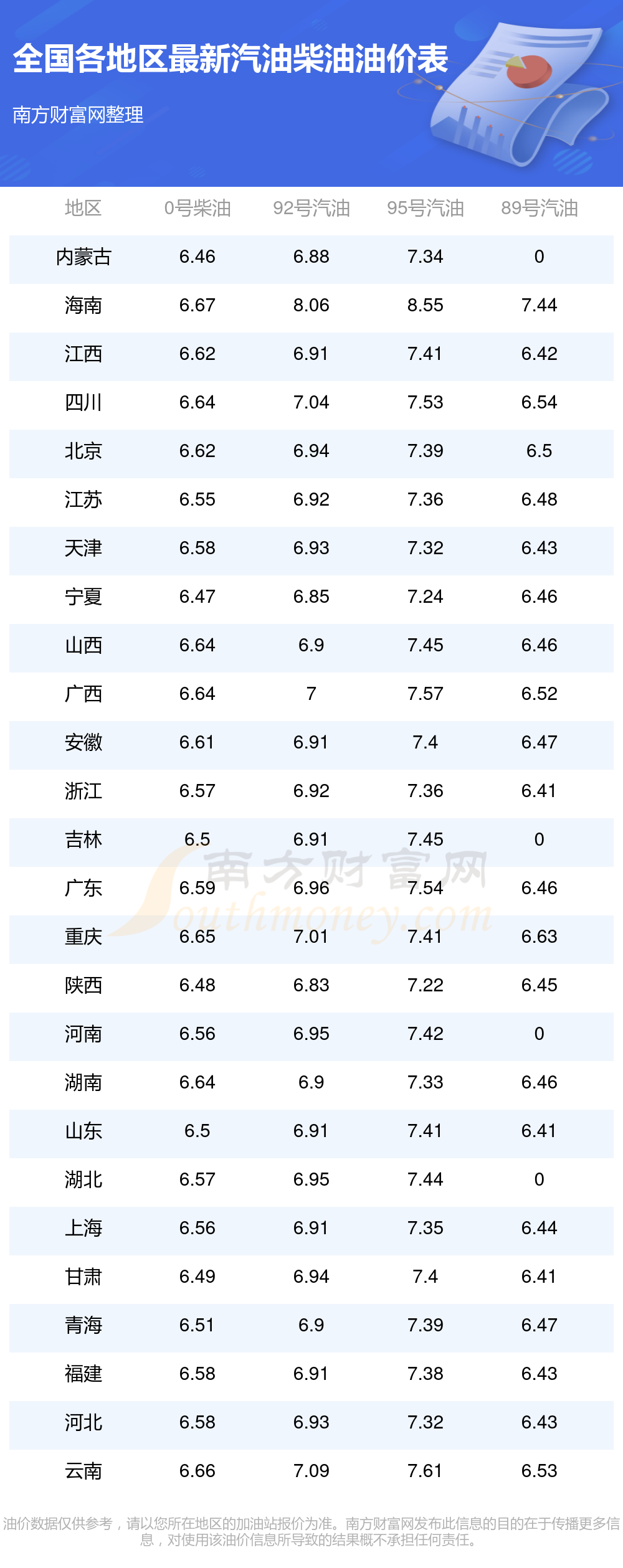 2025年11月15日全国油价调整及最新汽油价格表