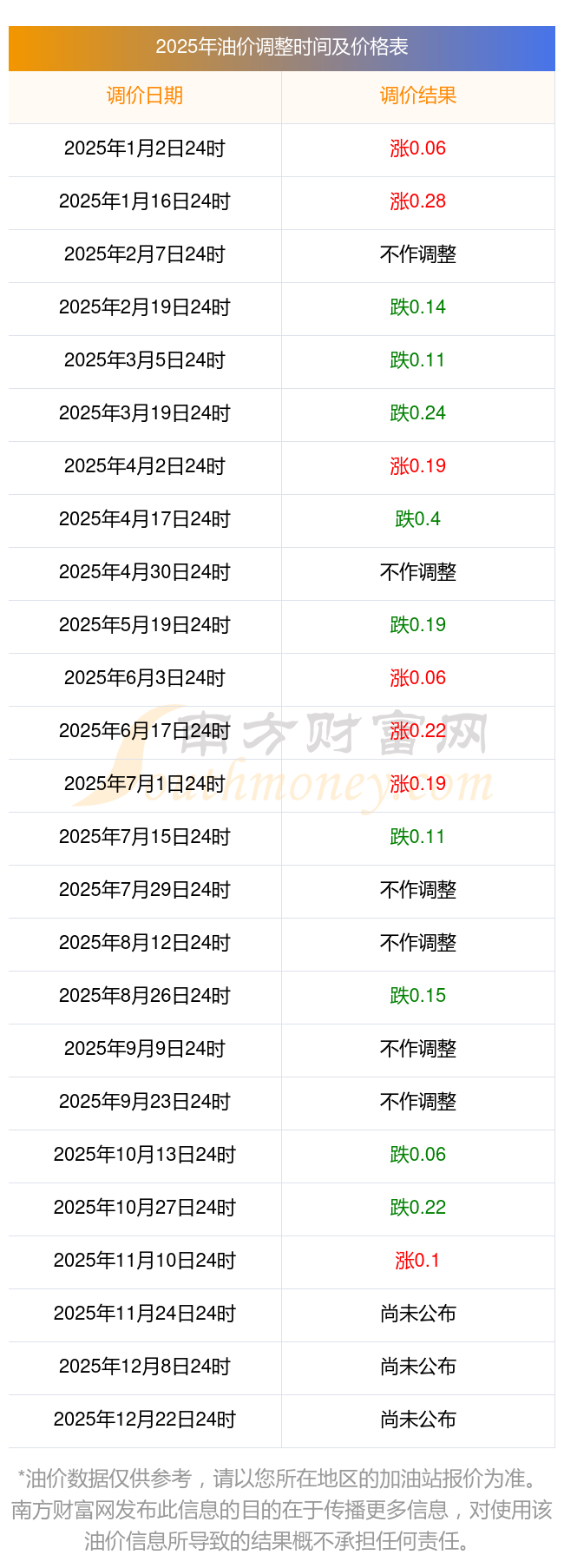 汽油价格调整最新消息:下一轮油价调整时间11月24日24时。11月15日安徽汽油、柴油每升最新价格多少钱一升?具体为:92号汽油6.91元,上升了0.1元;95号汽油7.4元,上升了0.1元;89号汽油6.47元,上升了0.1;0号柴油为6.61元,上升了0.1元,本次的调整时间是11月11日。