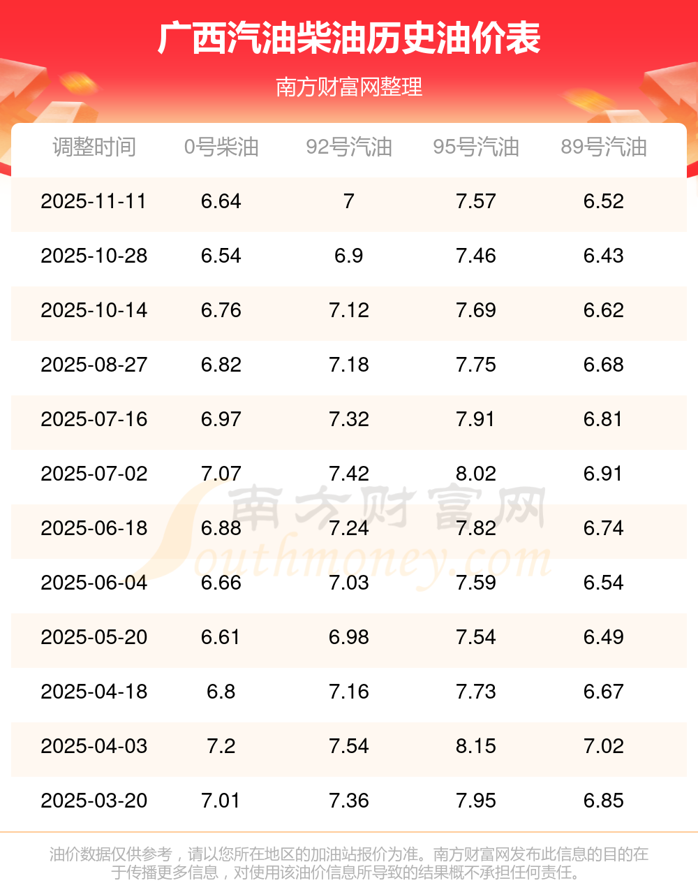 今日汽油价格广西92号汽油油价查询(2025/11/15更新)