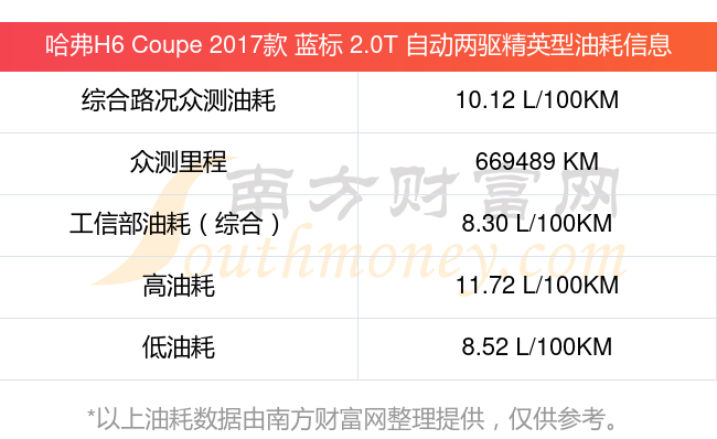 根据多位车主实测得出数据,该车型低油耗为8.52升/百公里,高油耗为11.72升/百公里,综合路况众测油耗为10.12升/百公里,工信部综合油耗为8.30升/百公里。