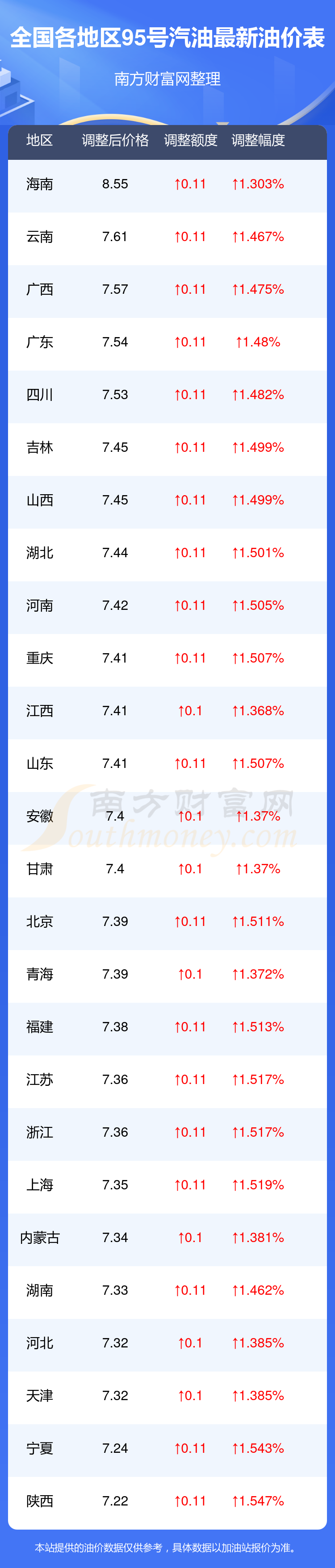 以上数据仅供参考,请以您所在地区的加油站实际售价为准。开云手机web版登录入口发布此信息的目的在于传播更多信息,对使用该油价信息所导致的结果概不承担责任。
