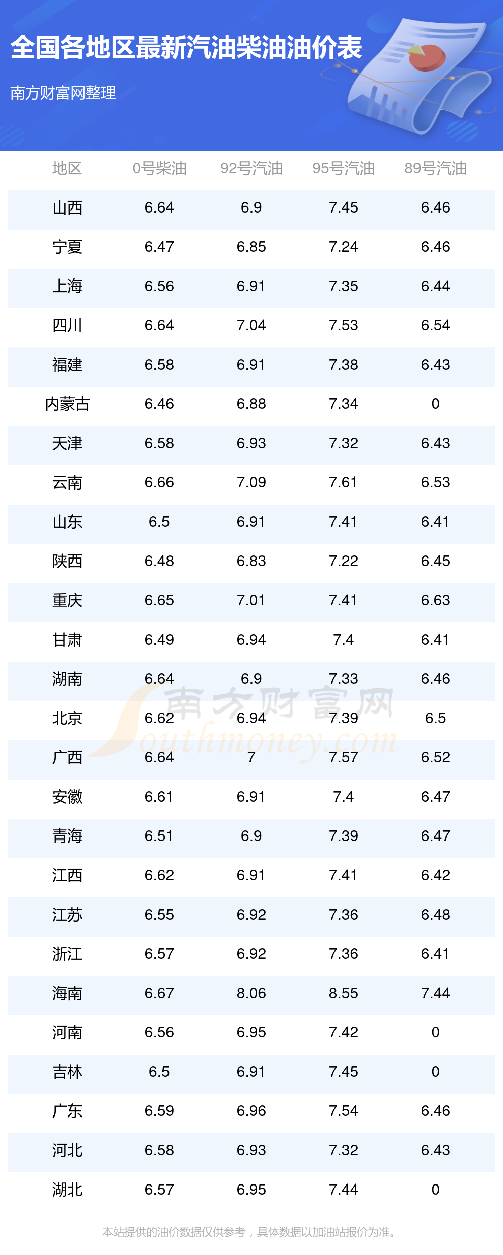 全国92号汽油11月15日最新平均价格为:7元/升,调整时间为11月11日,其中全国92号汽油最低为陕西,价格为6.83元/升,92号汽油最高为海南,价格为8.06元/升。,下一轮油价调整时间11月24日24时,距离现在还有9.74天。