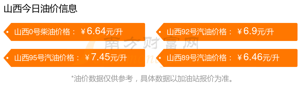 11月15日,山西92号汽油价格为6.9元每升,调整时间为11月11日,相对上次调整时间10月28日的油价6.8元/升,增了0.1元。