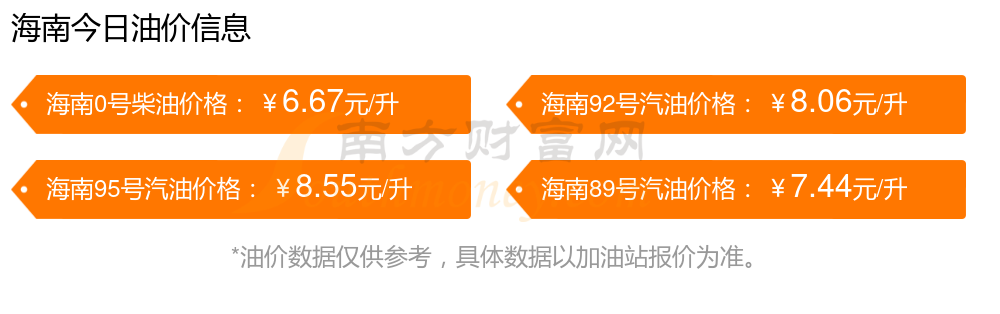 本站提供的油价数据仅供参考,具体数据以加油站报价为准。