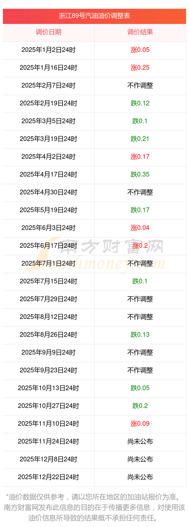浙江杭州2025年油价调整时间及最新价格表