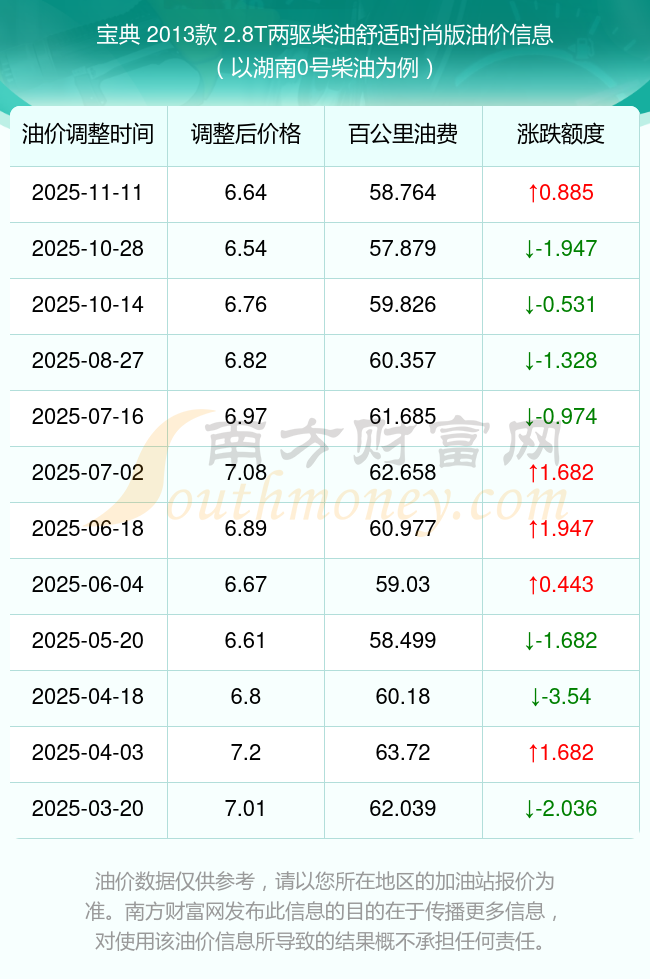 该车型目前采用的是2.8T92马力L4涡轮增压发动机,5挡手动挡的变速箱,按0号柴油当前最新价格6.64元/升来计算(以湖南为例),平均油费为0.58764元每公里。厂家参考价为8.68万元。