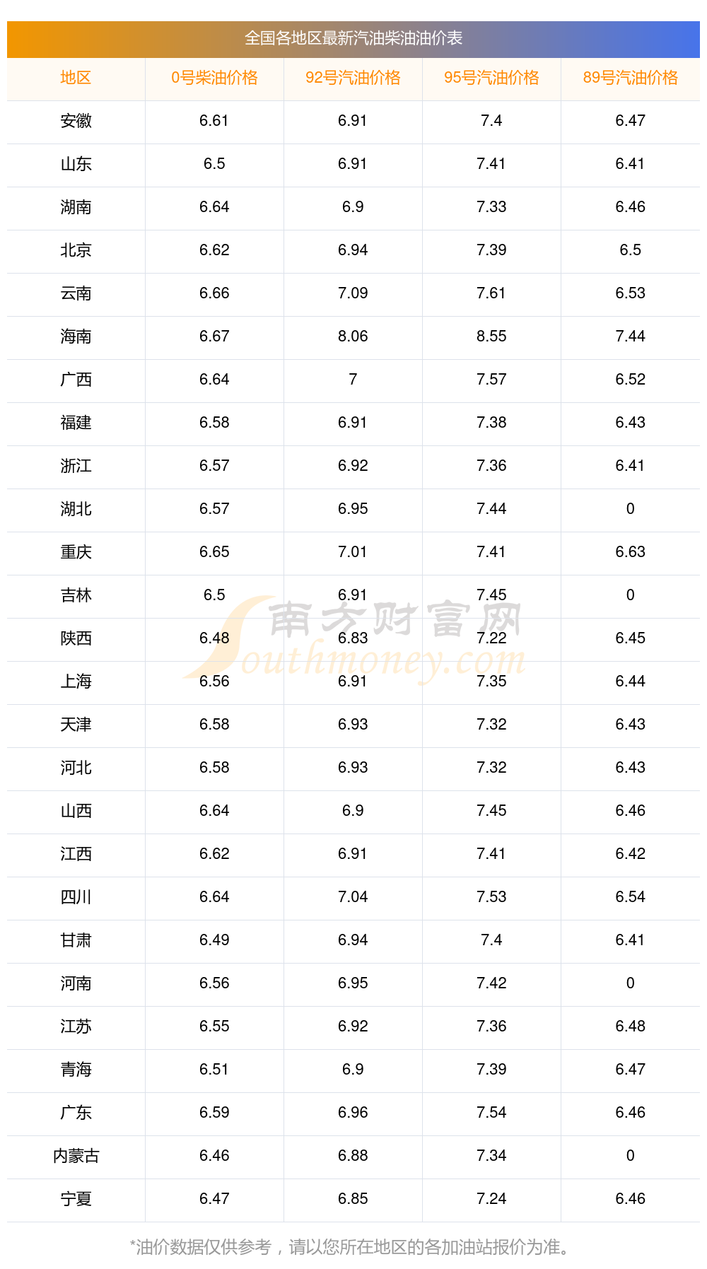 油价最新调整时间为11月11日,全国92号汽油最新平均价格为:7元每升,其中,最低为陕西,价格为6.83元/升,最高为海南,价格为8.06元/升。全国95号汽油最新平均价格为:7元每升,其中,最低为陕西,价格为7.22元/升,最高为海南,价格为8.55元/升。全国0号柴油最新平均价格为:7元每升,其中,最低为内蒙古,价格为6.46元/升,最高为海南,价格为6.67元/升。全国89号汽油最新平均价格为:7元每升,其中,最低为浙江,价格为6.41元/升,最高为海南,价格为7.44元/升。,下一轮油价调整时间11月24日24时,距离现在还有9.62天。