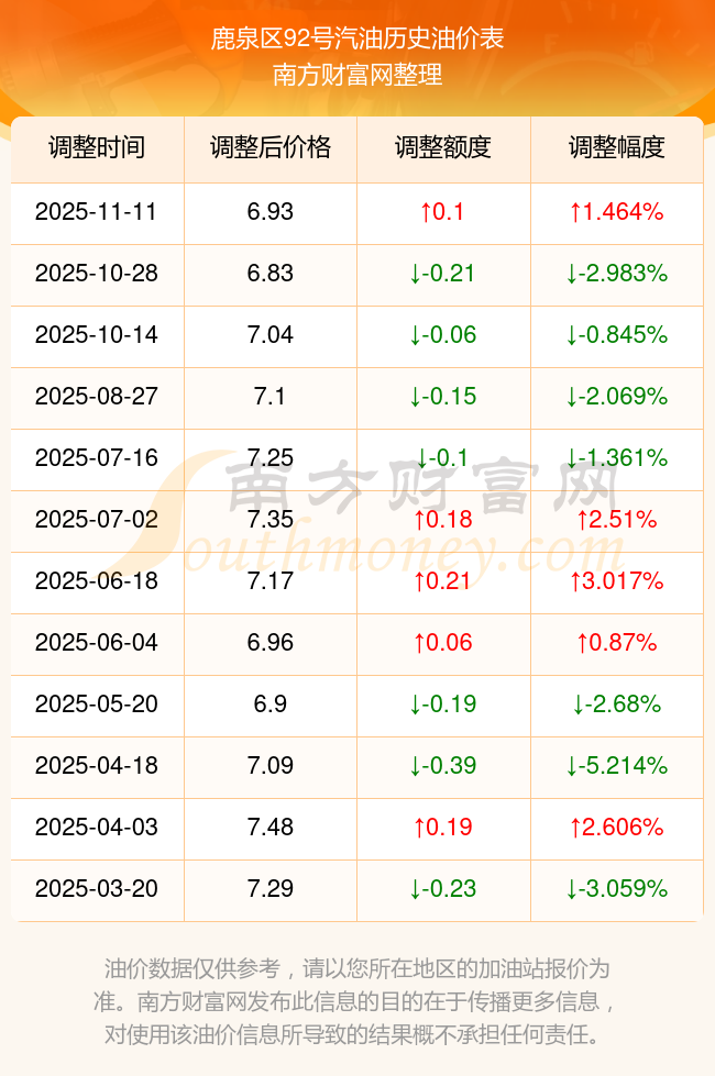 以上数据仅供参考,请以您所在地区的加油站实际售价为准。开云手机web版登录入口发布此信息的目的在于传播更多信息,对使用该油价信息所导致的结果概不承担责任。