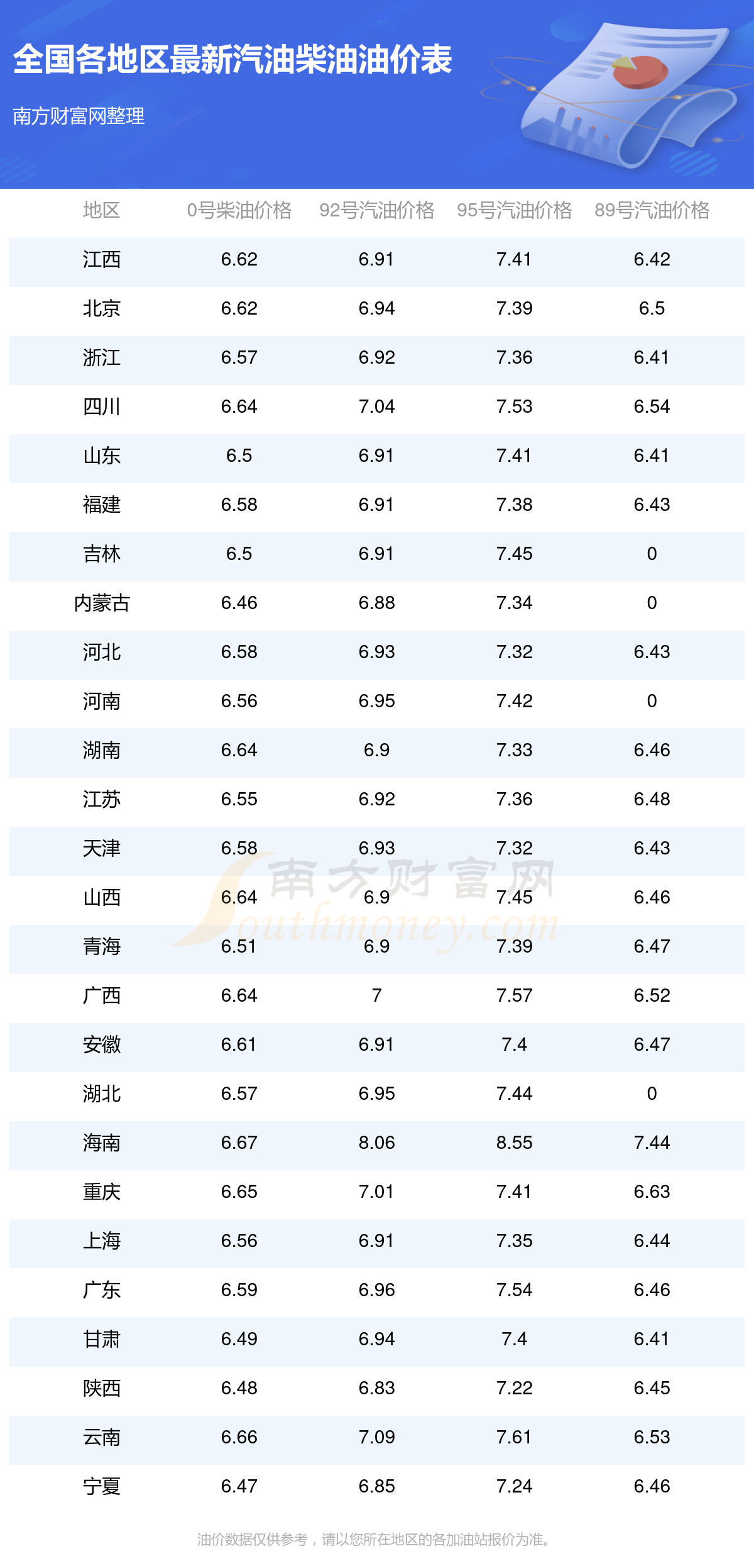 以上数据仅供参考,请以您所在地区的加油站实际售价为准。开云手机web版登录入口发布此信息的目的在于传播更多信息,对使用该油价信息所导致的结果概不承担责任。