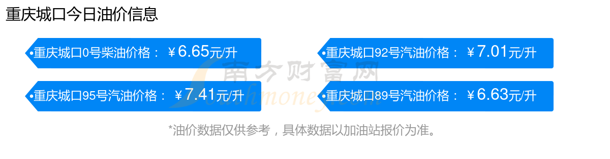 11月15日,重庆城口95号汽油最新价格为:7.41元每升,调整时间为11月11日,相对上次调整时间10月28日的油价7.3元每升,增了0.11元,增幅达1.507%。下一轮油价调整时间11月24日24时,距离现在还有9.61天。