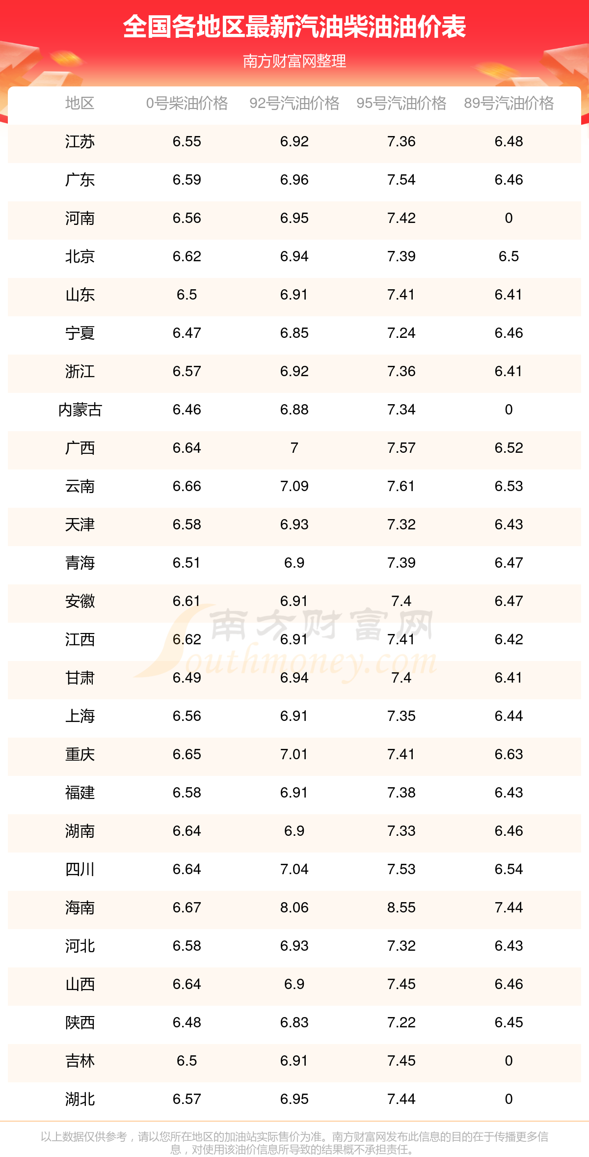 本站提供的油价数据仅供参考,具体数据以加油站报价为准。
