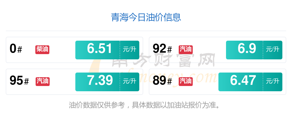 汽油价格调整最新消息:下一轮油价调整时间11月24日24时。11月15日,青海汽油、柴油每升最新价格为:调整时间为11月11日,92号汽油为6.9元,上调了0.1元,上调幅达1.47%;95号汽油为7.39元,上调了0.1元,上调幅达1.37%;89号汽油为6.47元,上调了0.09元,上调幅达1.41%;0号柴油为6.51元,上调了0.1元,上调幅达1.56%。