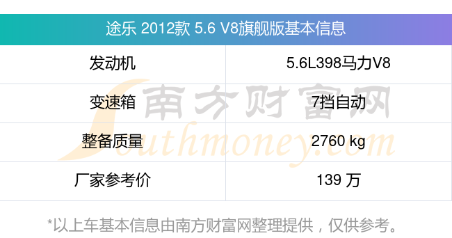途乐 2012款 5.6 V8旗舰版搭载了一台5.6L398马力V8自然吸气发动机,采用7挡自动档变速箱,常规整备质量2760kg,厂家参考价139万元。