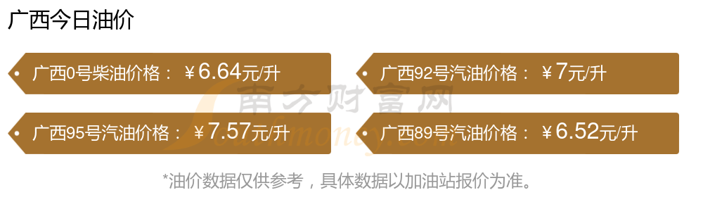 11月15日,广西95号汽油的价格是7.57元每升,本次的调整时间为11月11日,对比上次的调整增了0.11元,增1.475%,下次调整时间为11月24日24时,还有9.56天。