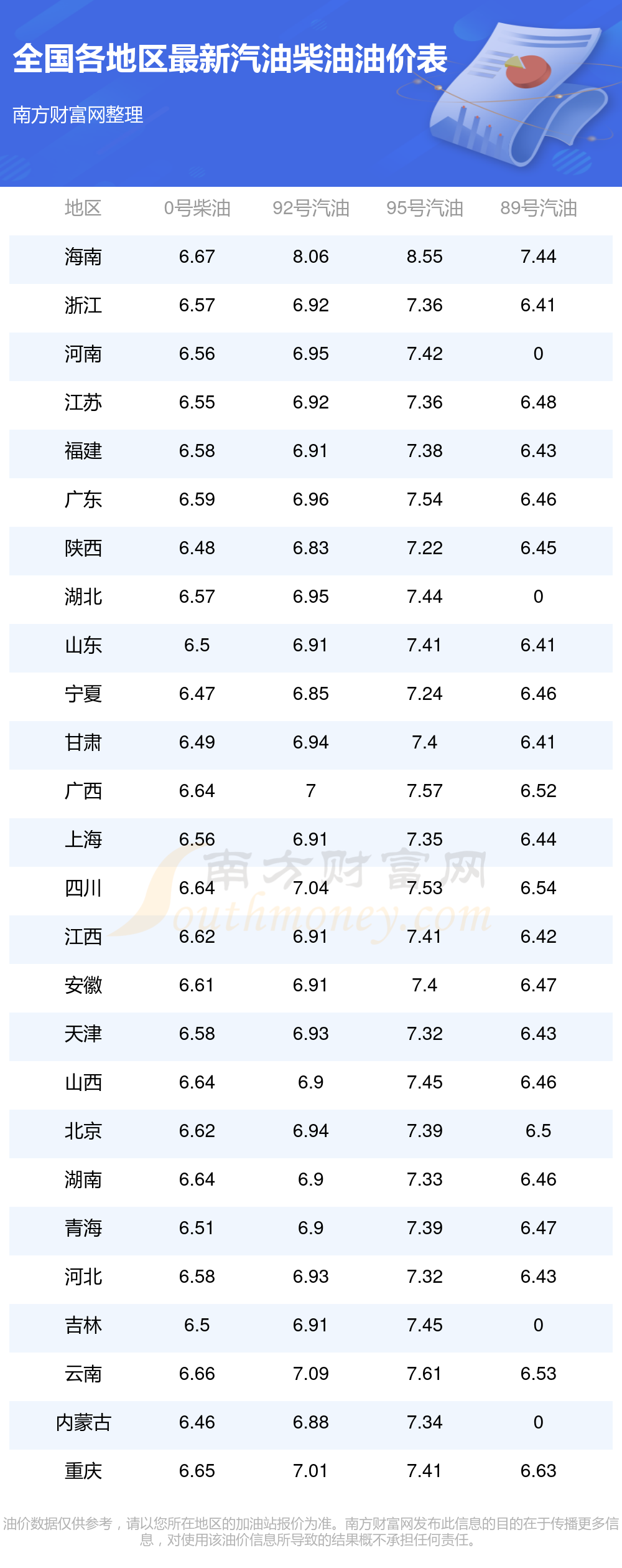 2025年11月15日全国油价调整及最新汽油价格表