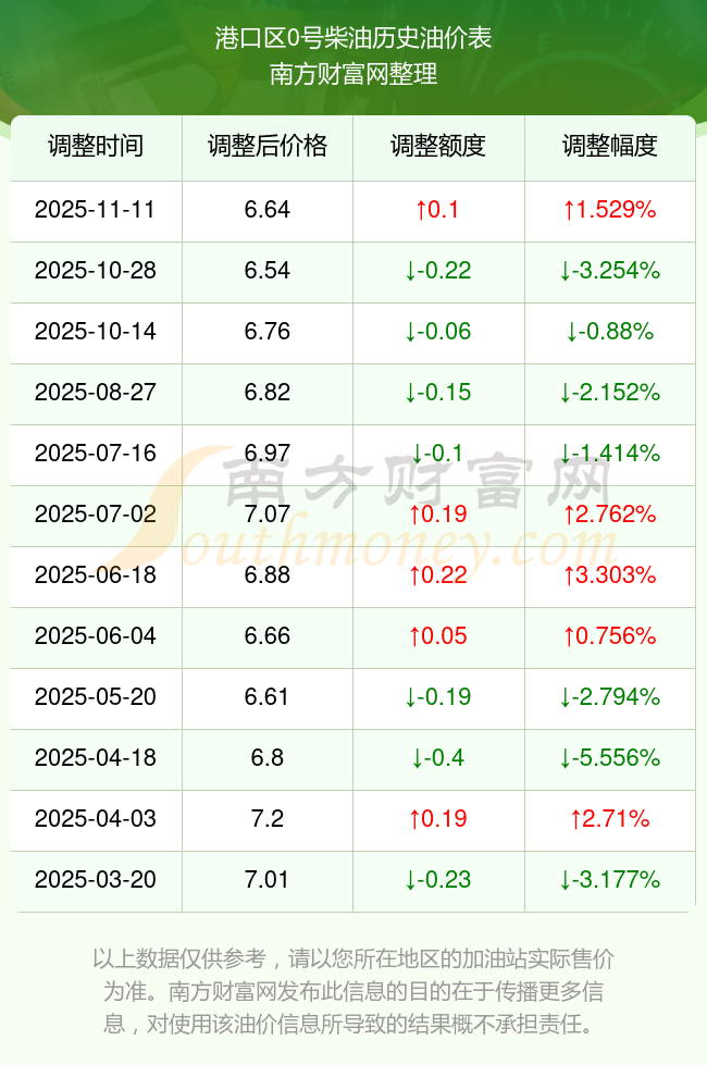 港口区0号柴油历史油价表
