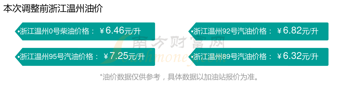 油价调整最新消息:11月15日,浙江温州汽油、柴油每升最新价格:本轮的油价调整时间是11月11日,92号汽油为6.92元,增了0.1元,增幅达1.47%;95号汽油为7.36元,增了0.11元,增幅达1.52%;89号汽油为6.41元,增了0.09元,增幅达1.42%;0号柴油为6.57元,增了0.11元,增幅达1.7%。浙江温州下一轮油价调整时间11月24日24时,距离现在还有9.54天。