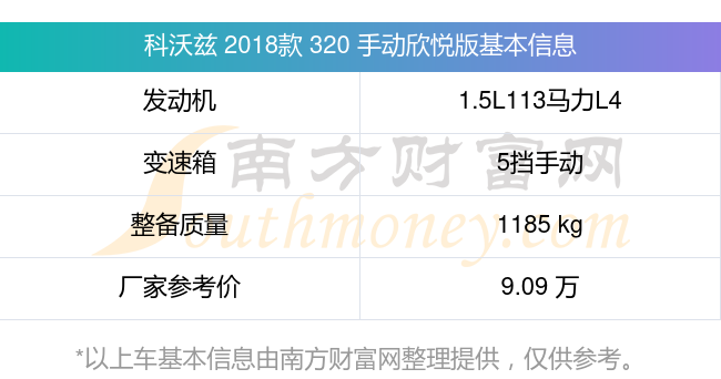 科沃兹 2018款 320 手动欣悦版动力上搭载的是一台1.5L113马力L4自然吸气发动机,匹配5挡手动挡变速箱,燃料形式为汽油,常规整备质量1185kg,厂家参考价9.09万元。