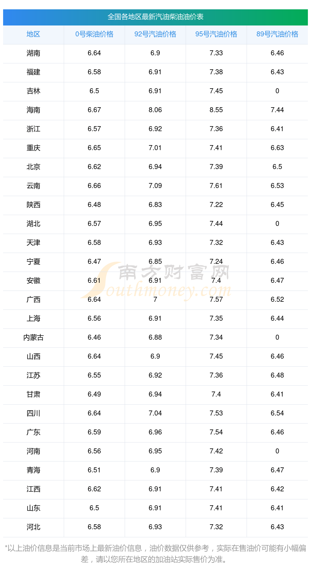 全国0号柴油最新平均价格为:7元每升,其中,最低为内蒙古,价格为6.46元/升,最高为海南,价格为6.67元/升。