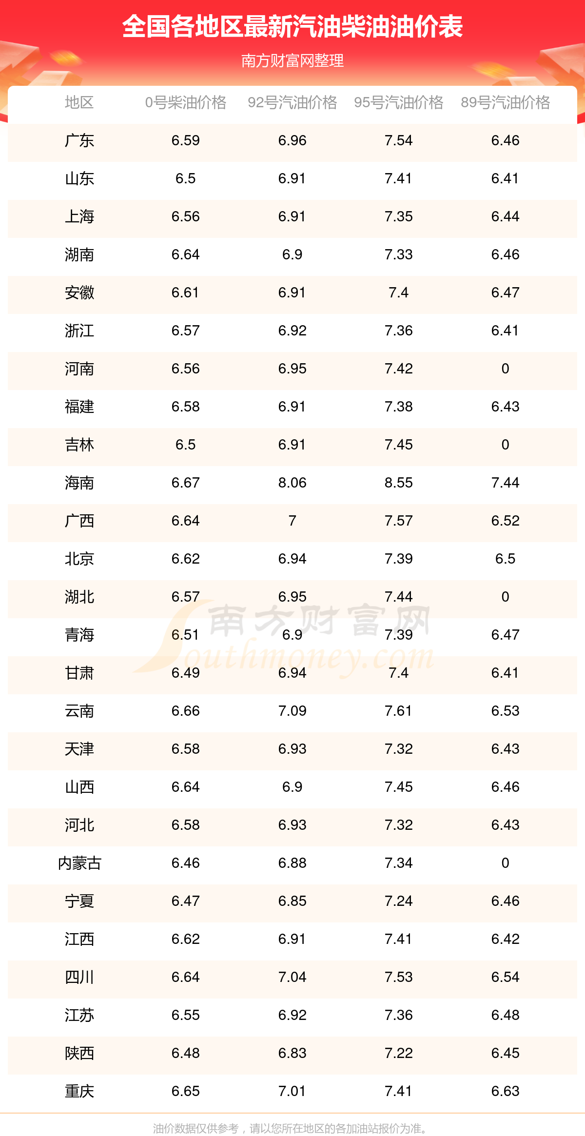 11月15日全国92、95汽油最新价格表