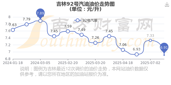 11月15日福建福州92号汽油的价格是6.91元/升(调整时间为11月11日),对比上次调整时间10月28日的油价6.81元/升,增了0.1元,增幅达1.468%。 下一轮油价调整时间11月24日24时,距离现在还有9.51天。 2025年92号汽油价格一览表 副标题 油价频繁调整的原因