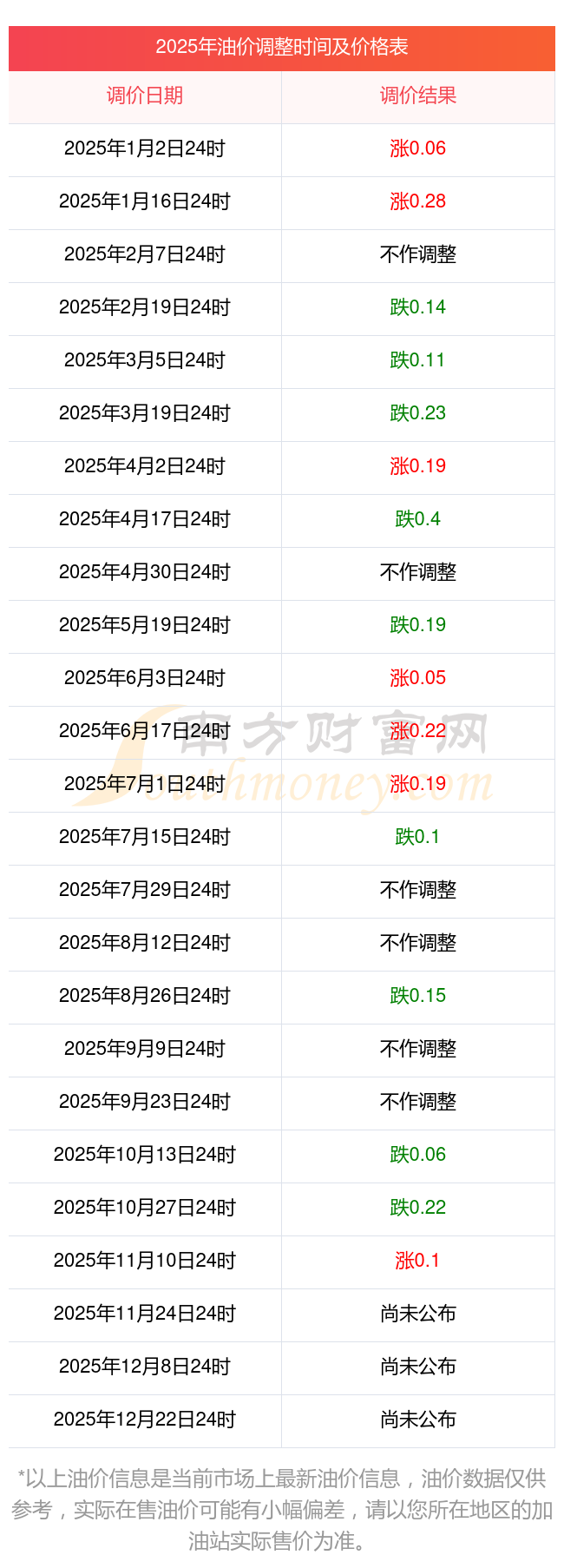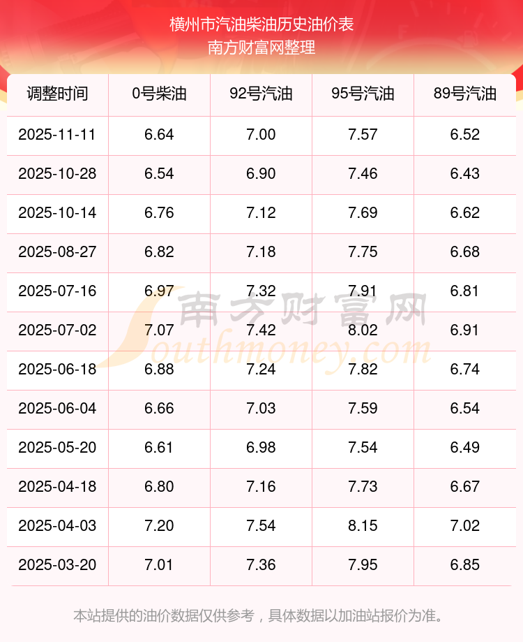 2025年横州市油价调整时间表