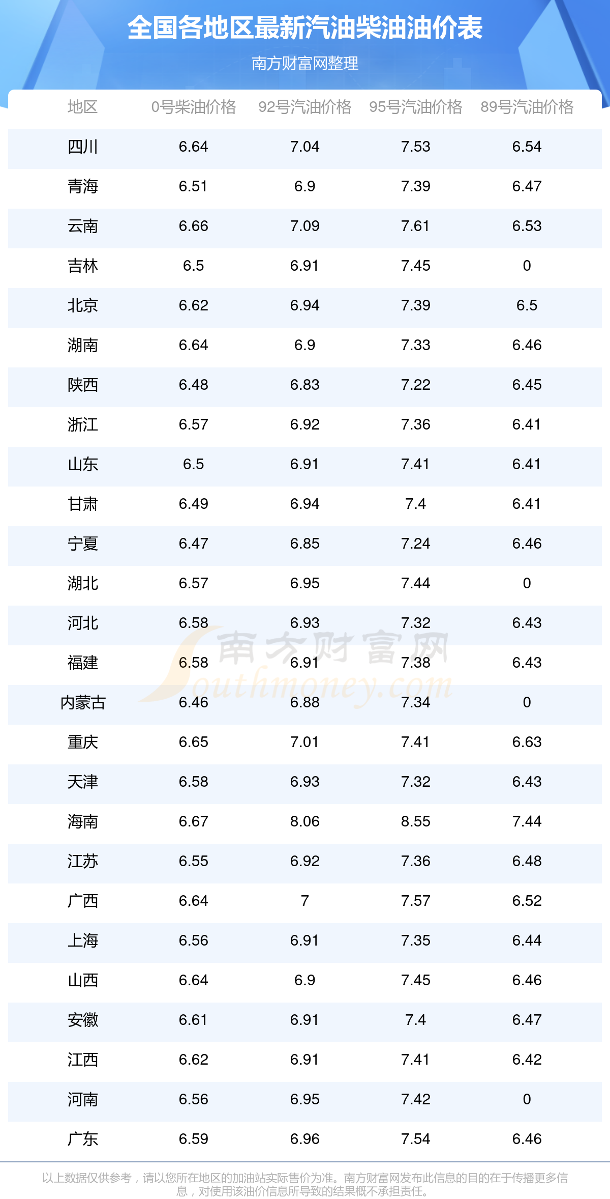 油价数据仅供参考,请以您所在地区的加油站报价为准。开云手机web版登录入口发布此信息的目的在于传播更多信息,对使用该油价信息所导致的结果概不承担任何责任。