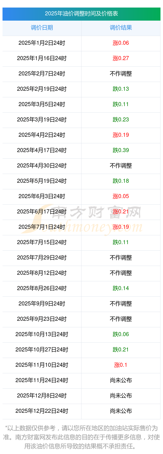 2025年11月15日油价调整时间及价格一览表