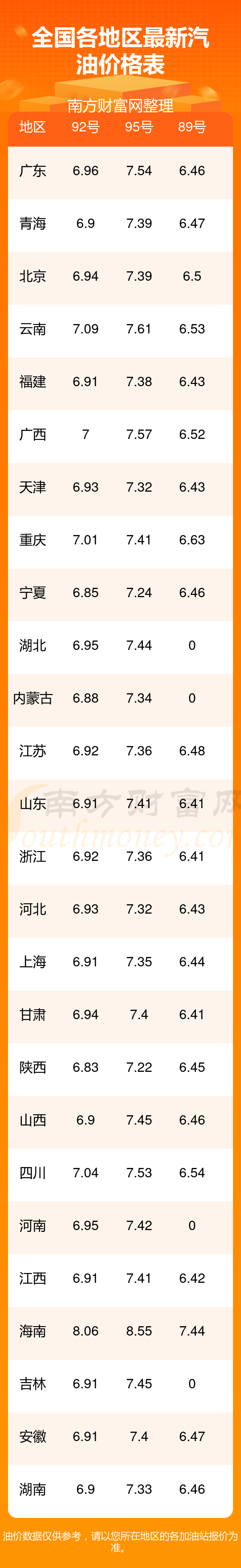 以上数据仅供参考,请以您所在地区的加油站实际售价为准。开云手机web版登录入口发布此信息的目的在于传播更多信息,对使用该油价信息所导致的结果概不承担责任。