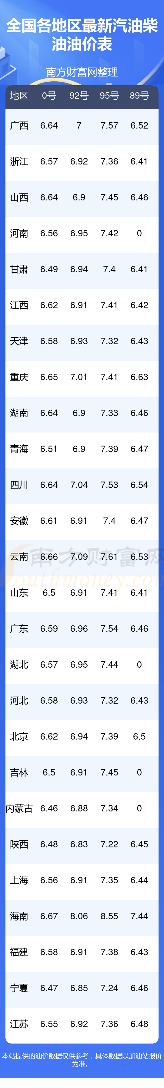 油价数据仅供参考,请以您所在地区的加油站报价为准。开云手机web版登录入口发布此信息的目的在于传播更多信息,对使用该油价信息所导致的结果概不承担任何责任。
