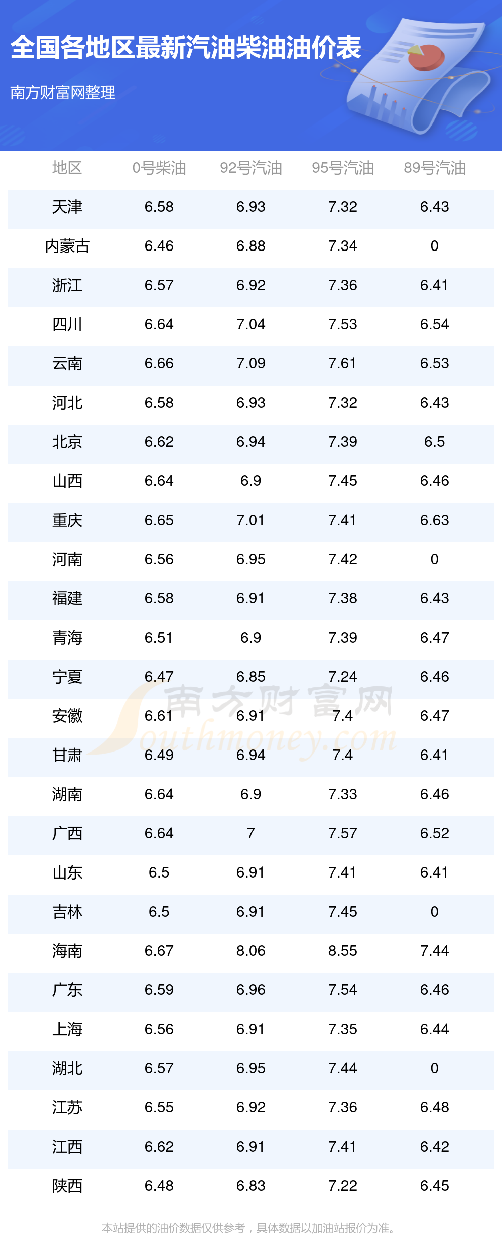 油价数据仅供参考,请以您所在地区的各加油站报价为准。