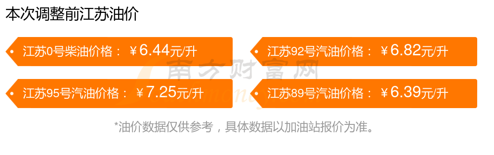 江苏汽油、柴油11月15日每升的价格是多少?具体为:92号汽油为6.92元;95号汽油为7.36元;89号汽油为6.48元,上调了0.09;0号柴油为6.55元,本轮调整时间为11月11日。