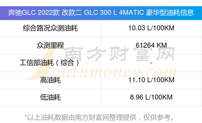 根据车主实测数据,该车型低油耗为8.96升每百公里,高油耗为11.10升每百公里,综合路况众测油耗为10.03升每百公里。