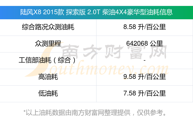 根据多位车主实测得出数据,该车型低油耗为7.58升/百公里,高油耗为9.58升/百公里,综合路况众测油耗为8.58升/百公里。