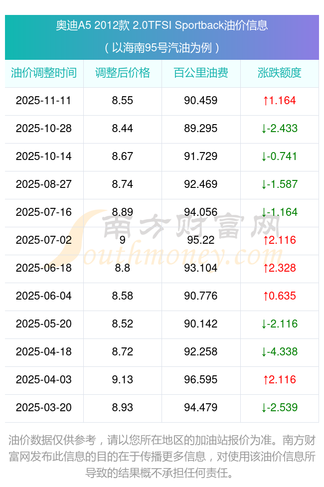 数据仅供参考,一般现实油耗与测试值会有差异,请以实际油耗为准。