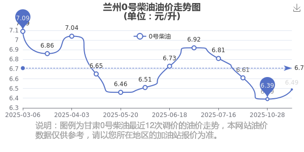 油价调整最新消息:兰州汽油、柴油11月15日每升的价格是多少?具体为:92号汽油为6.94元,升了0.11元;95号汽油为7.4元,升了0.1元;89号汽油为6.41元,升了0.09元;0号柴油为6.49元,升了0.1元,本轮油价的调整时间为11月11日。兰州下一轮油价调整时间11月24日24时,距离现在还有9.46天。