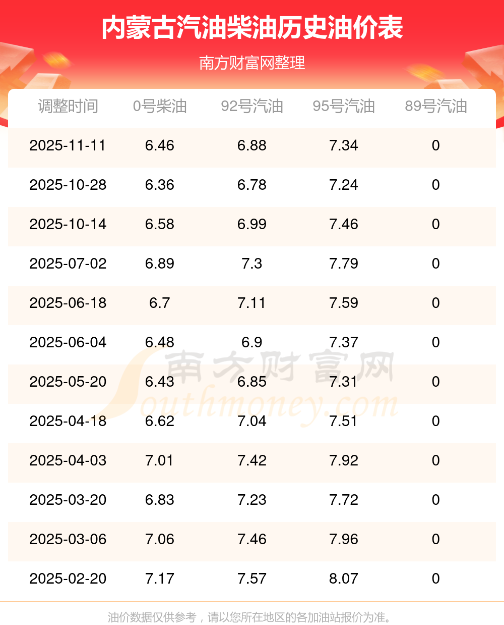 11月油价调整时间:11月10日、11月24日